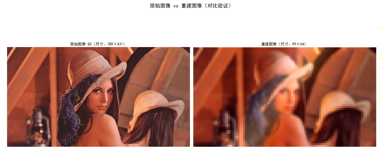 - 由于残差记录了所有丢失的细节,重建后的图像与原始图像几乎完全一致(MSE 接近 0)。