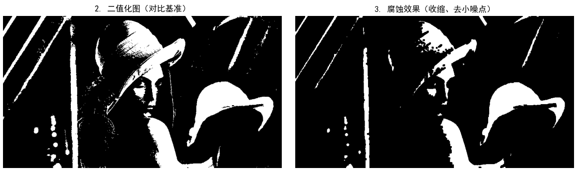- 直观效果(对比图中左侧二值化图与右侧腐蚀效果):