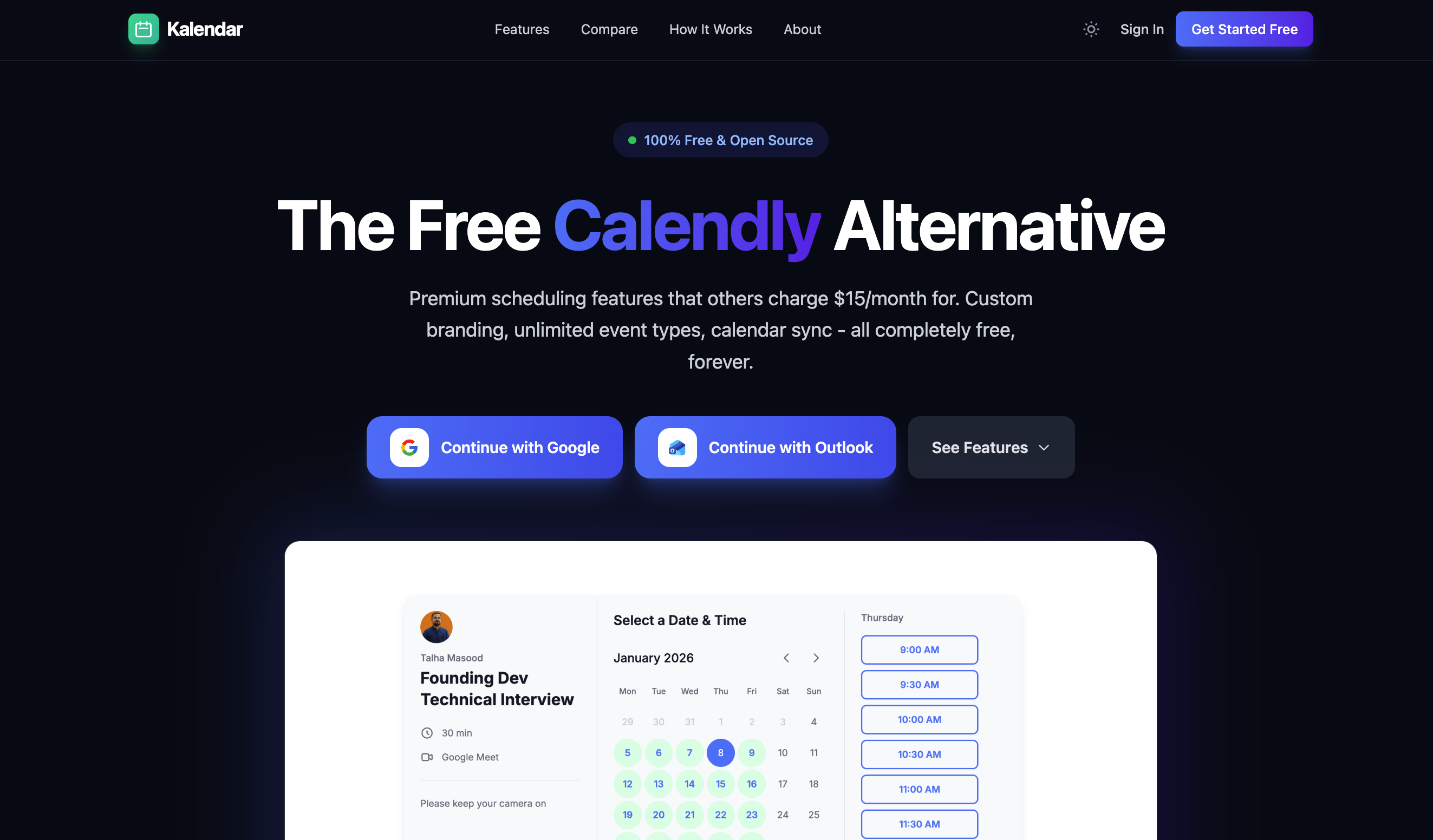 标语:一个功能齐全的免费Calendly替代工具