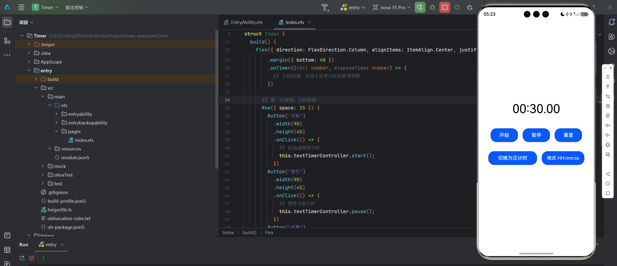 在掌握了Hello World和计数器应用后,如何迈入HarmonyOS应用开发的下一级台阶?自定义计时器是理想的进阶案例。它不仅是日常应用中的高频功能------从考试倒计时到番茄工作法,从运动计时到在线课程提醒------更因为它完美融合了状态管理、用户交互和组件控制的核心思想,是初学者从"显示"迈向"控制"的关键一步。