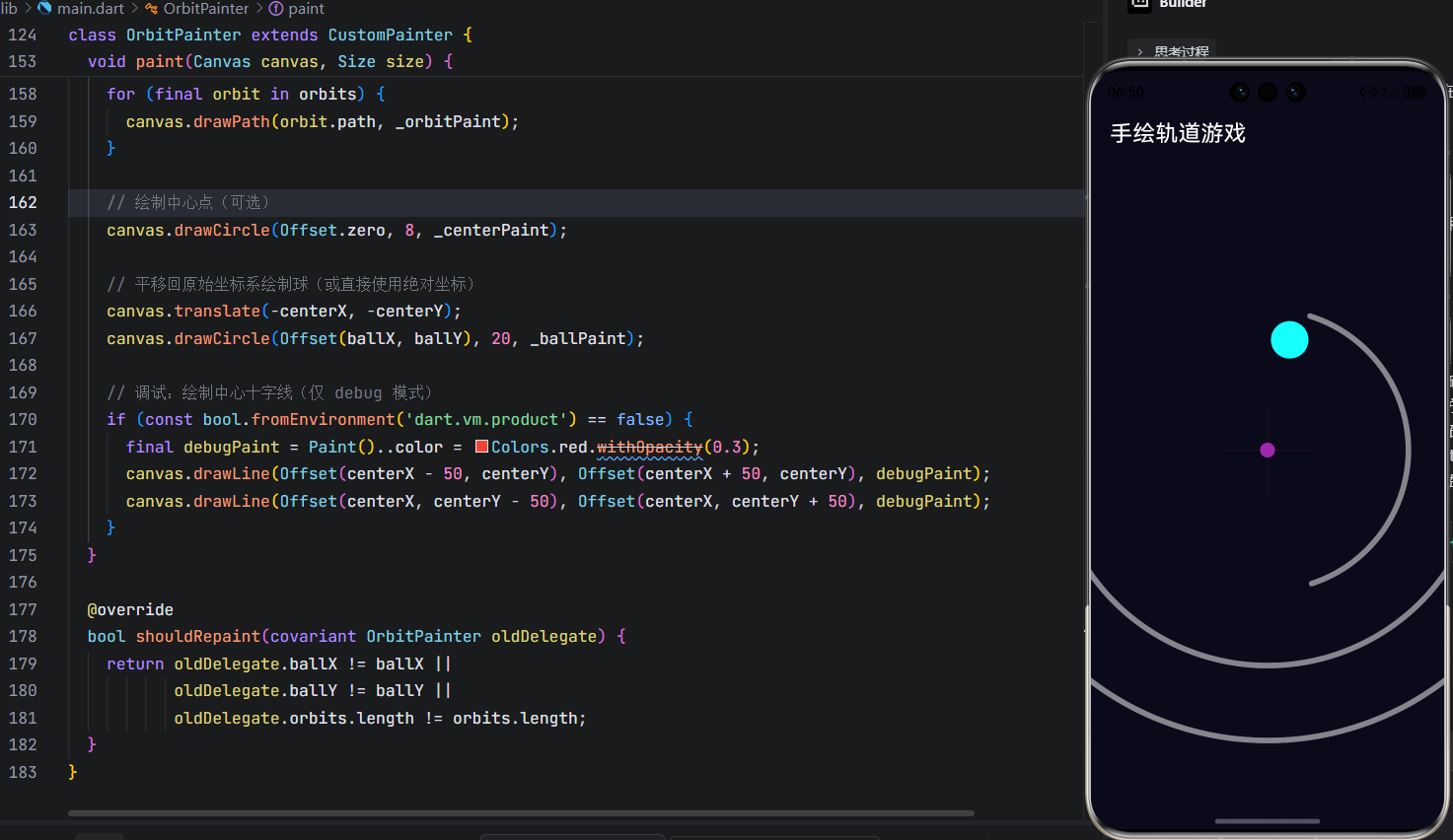 | Canvas 坐标变换 | 使用 canvas.translate 将原点移至屏幕中心,简化轨道绘制 |