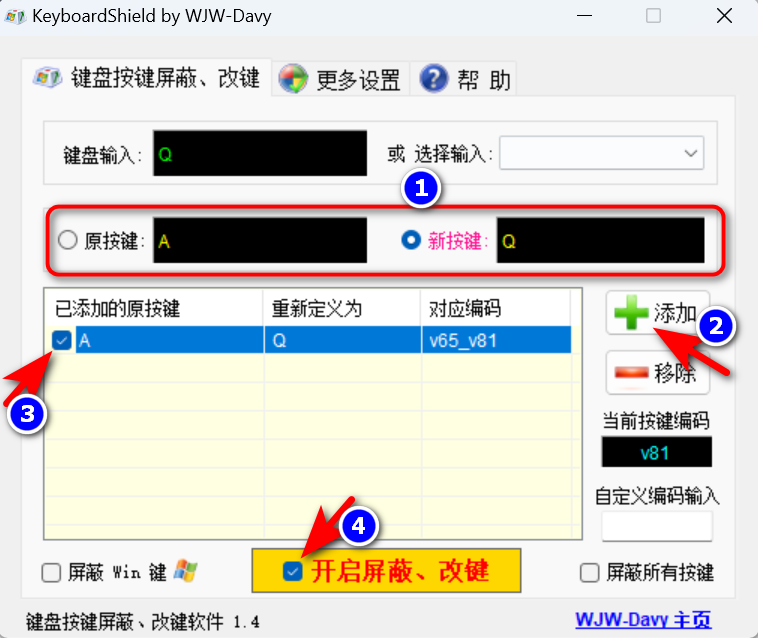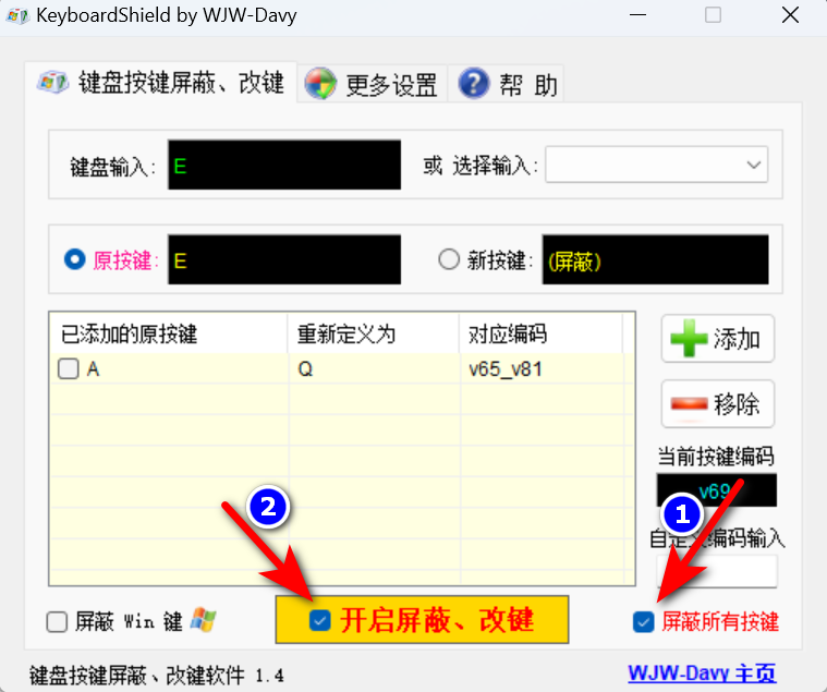 主要就干两件事:把坏掉的键位用其他键顶替,或者直接屏蔽整个键盘防误触。比如Q键坏了?用A键顶上!清洁键盘时怕误触?一键屏蔽所有按键!