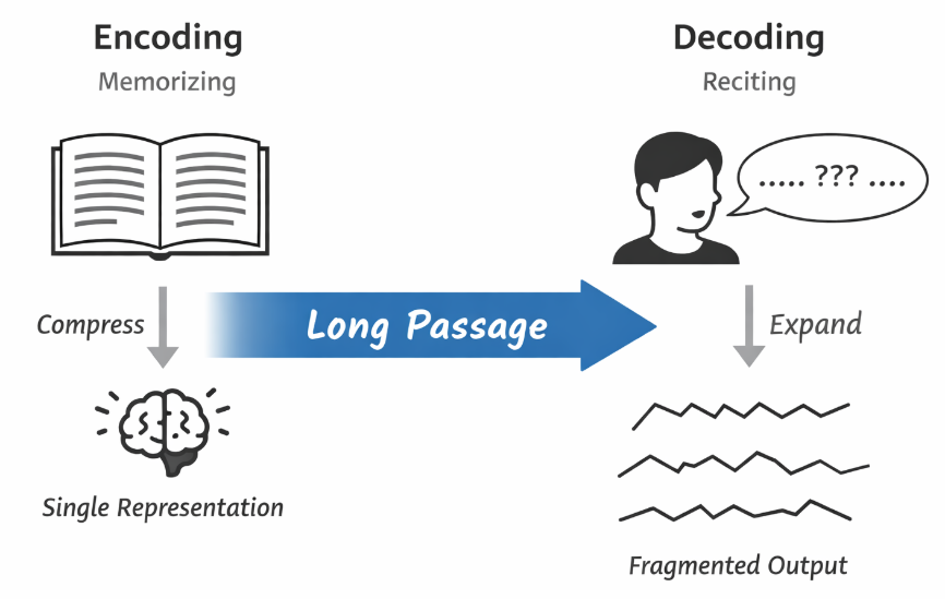 | 信息瓶颈(Information Bottleneck) | 长序列或复杂结构在压缩成定长表示时会丢失细节信息,损失随长度增长被放大 | 背长篇课文容易遗漏细节 |