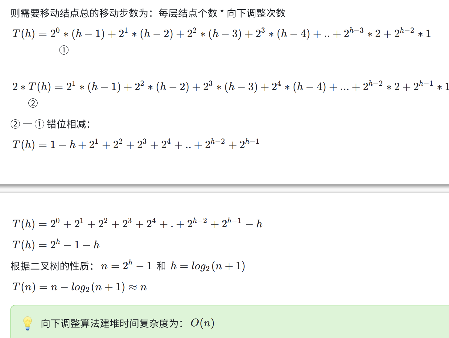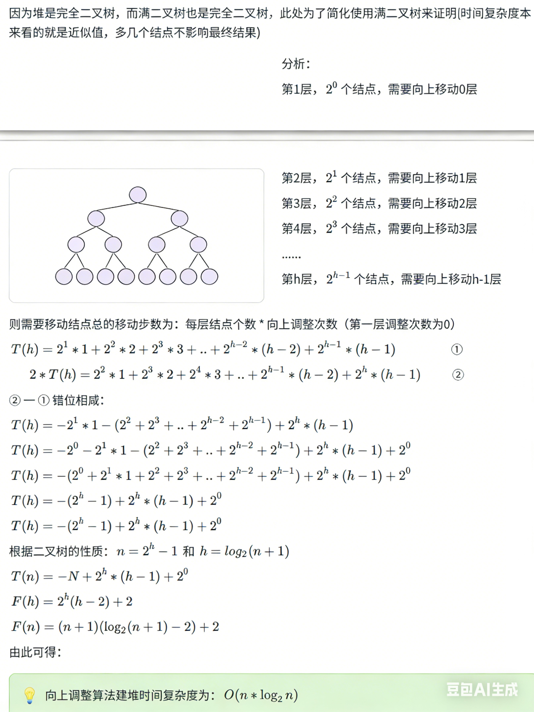 - 讨论:向下调整与向上调整建堆的时间复杂度