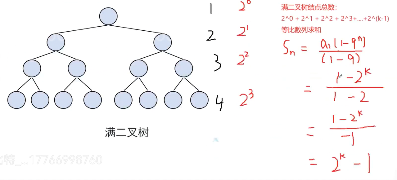 ⼀个二叉树,如果每⼀个层的结点数都达到最大值,则这个二叉树就是满二叉树。也就是说,如果⼀个二叉树的层数为 K,且结点总数是 2^k − 1,则它就是满二叉树。