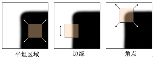 - 若某个点向任意方向移动,灰度都几乎无变化 → 这是平坦区域