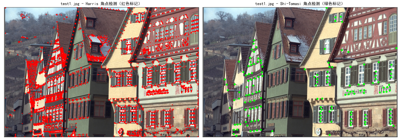 - 特点:提取的角点质量更高、冗余更少,在图像拼接等场景中鲁棒性更强,是工程上更常用的角点检测方案。