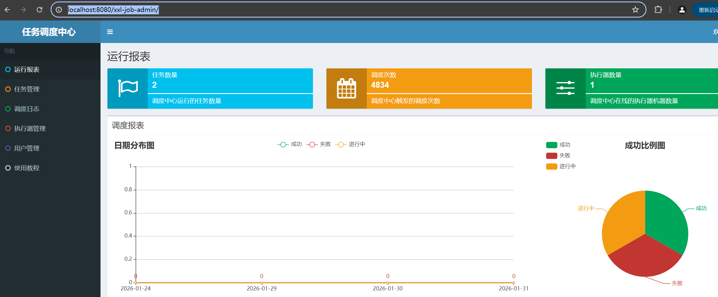 - 建议:推荐通过nginx为调度中心集群做负载均衡,分配域名。调度中心访问、执行器回调配置、调用API服务等操作均通过该域名进行。