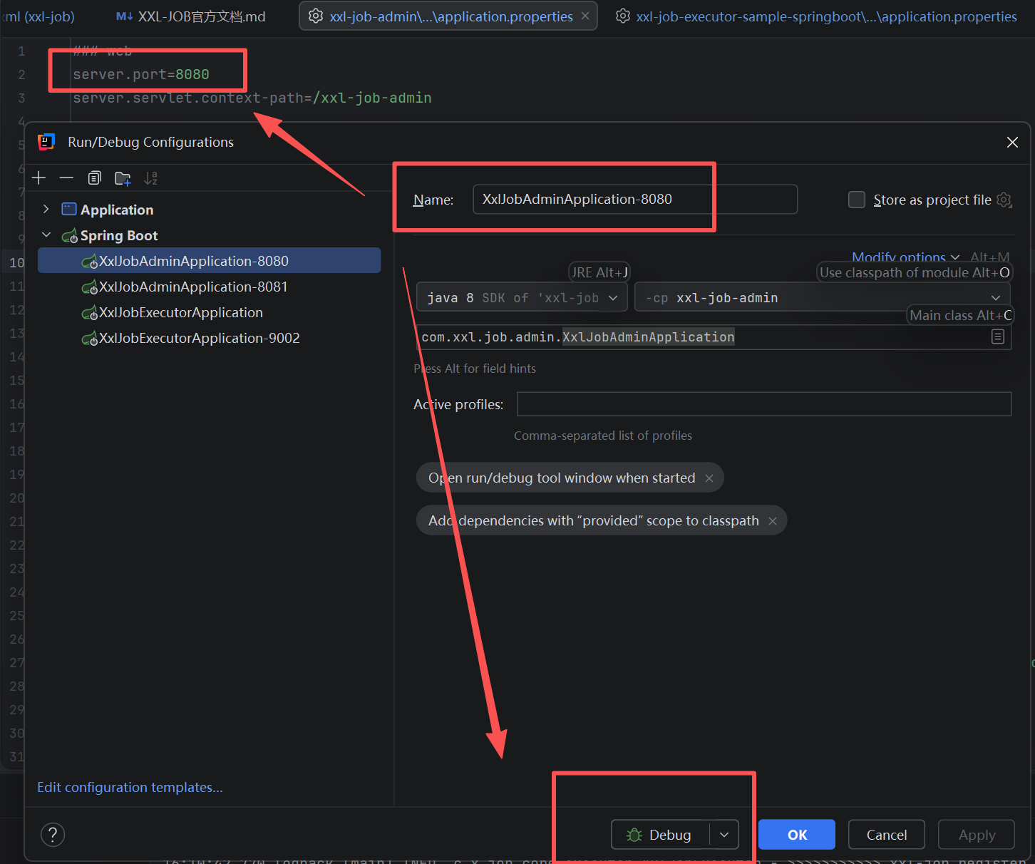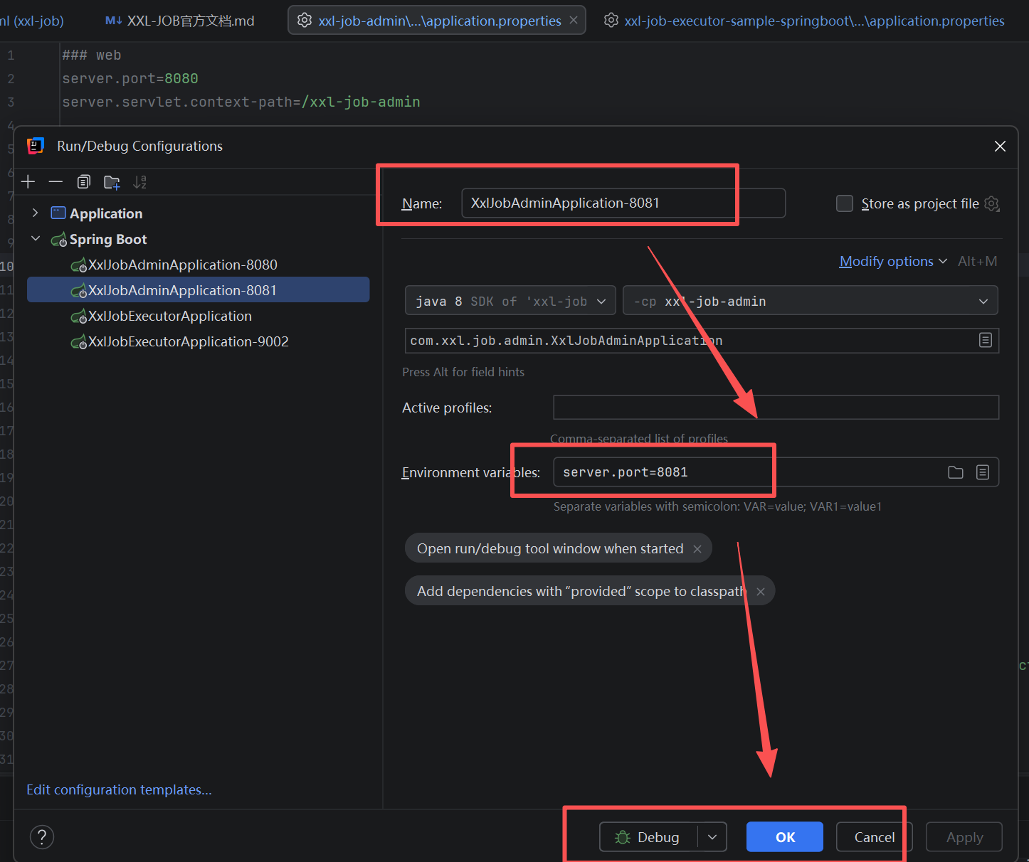 现在直接在本地通过idea里面启动两个xxl-job-admin实例:端口分别为8080、8081