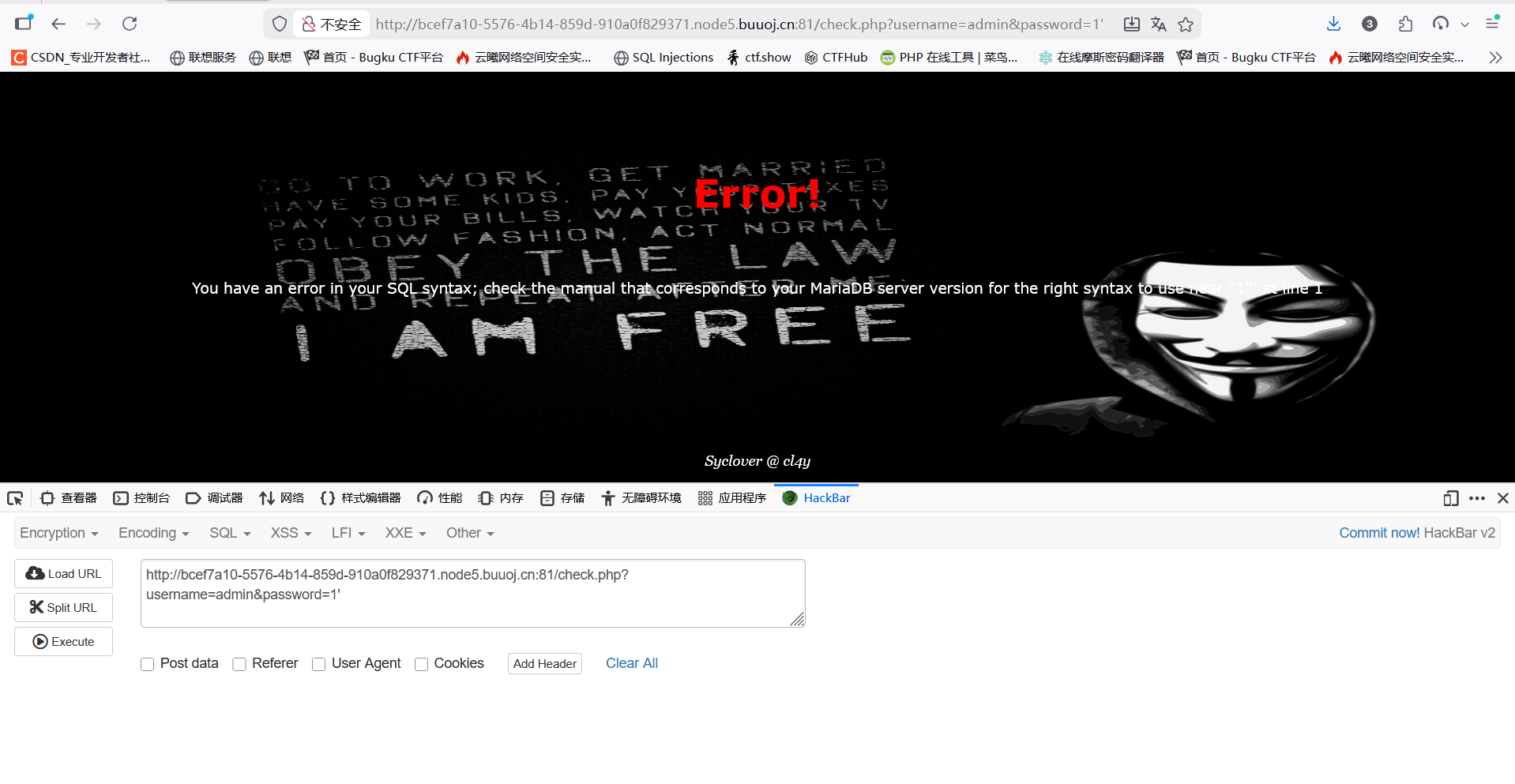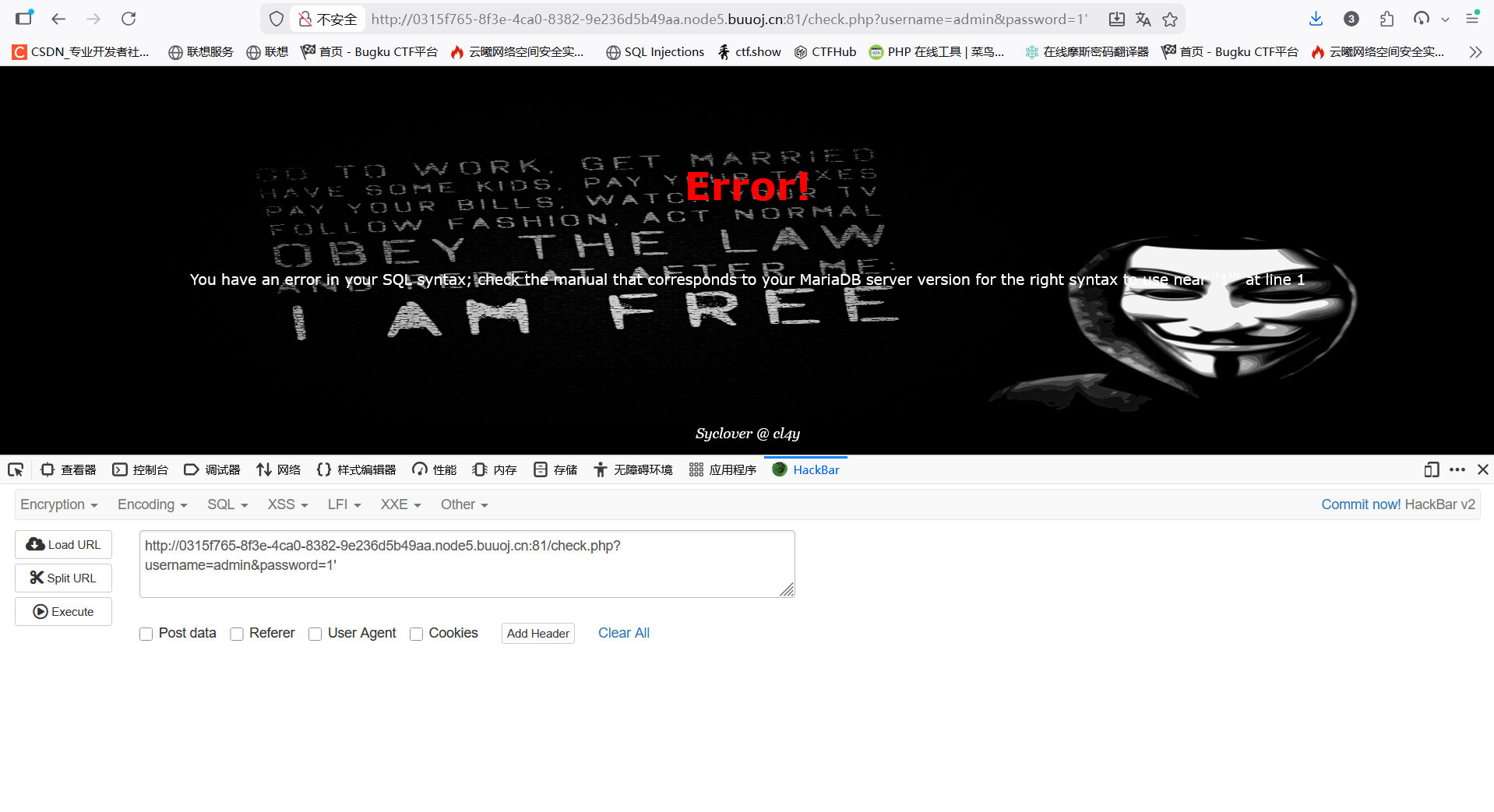 先查看是什么注入,输入?wllm=1';出现报错说明是字符型注入