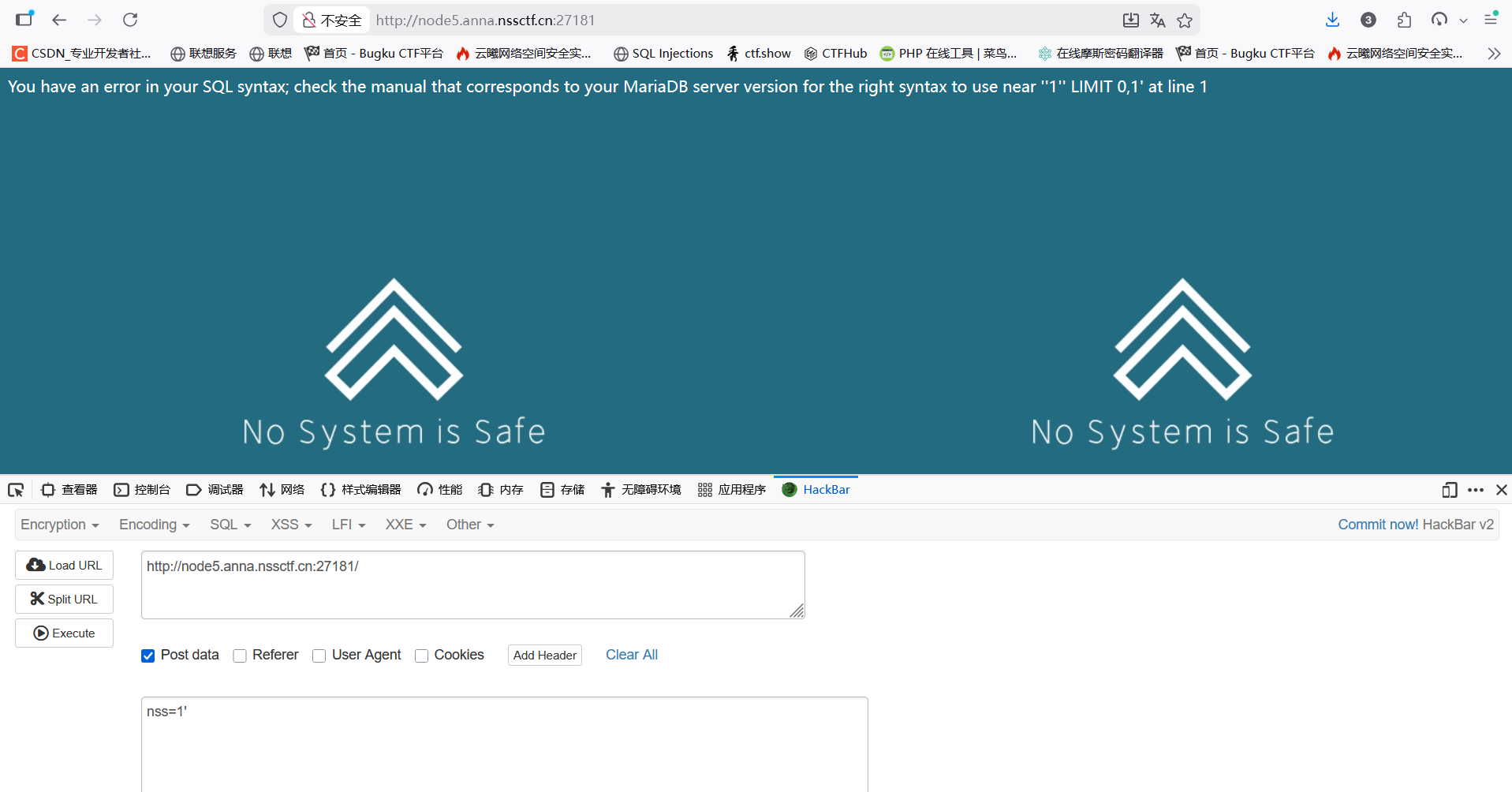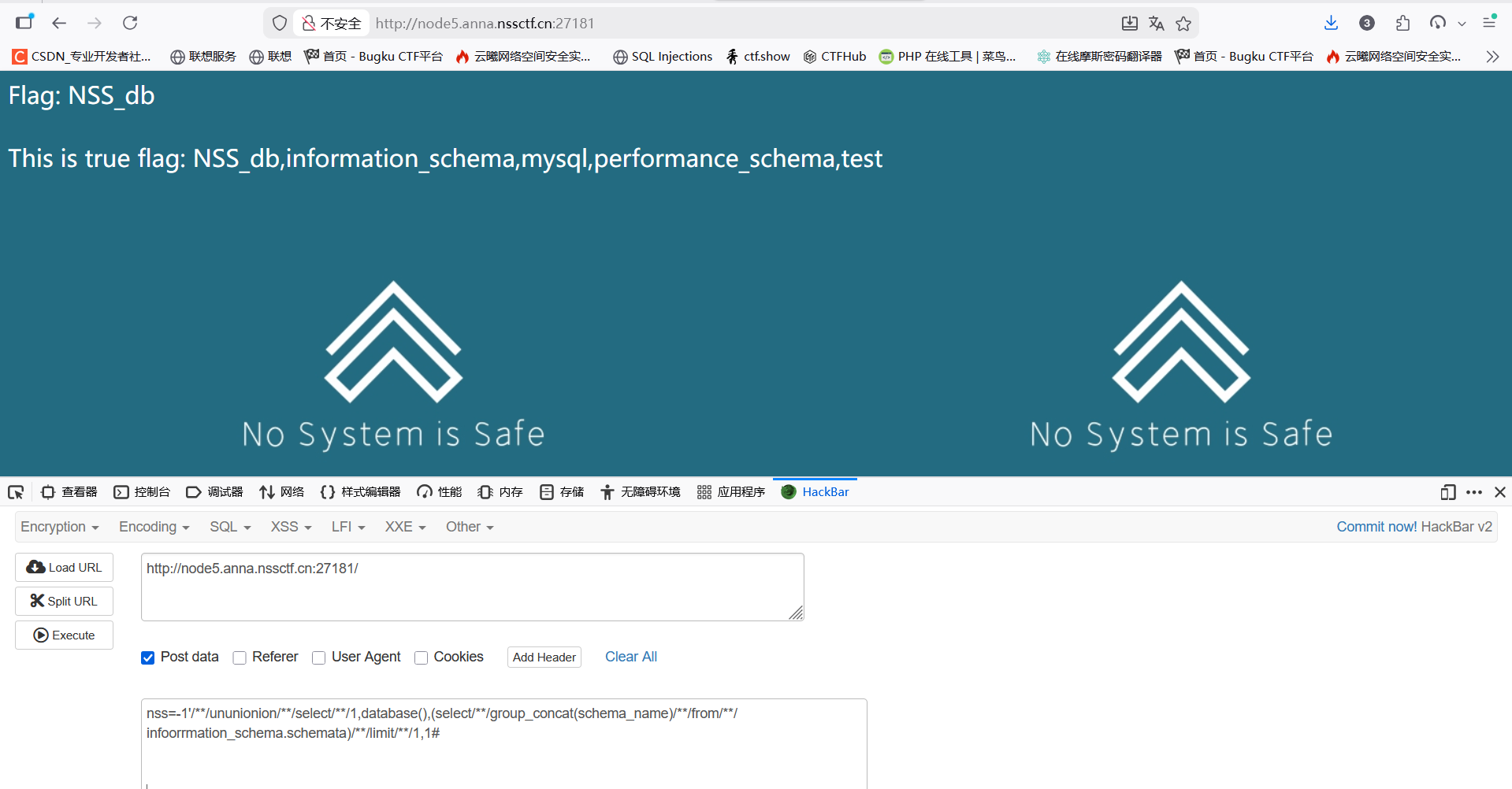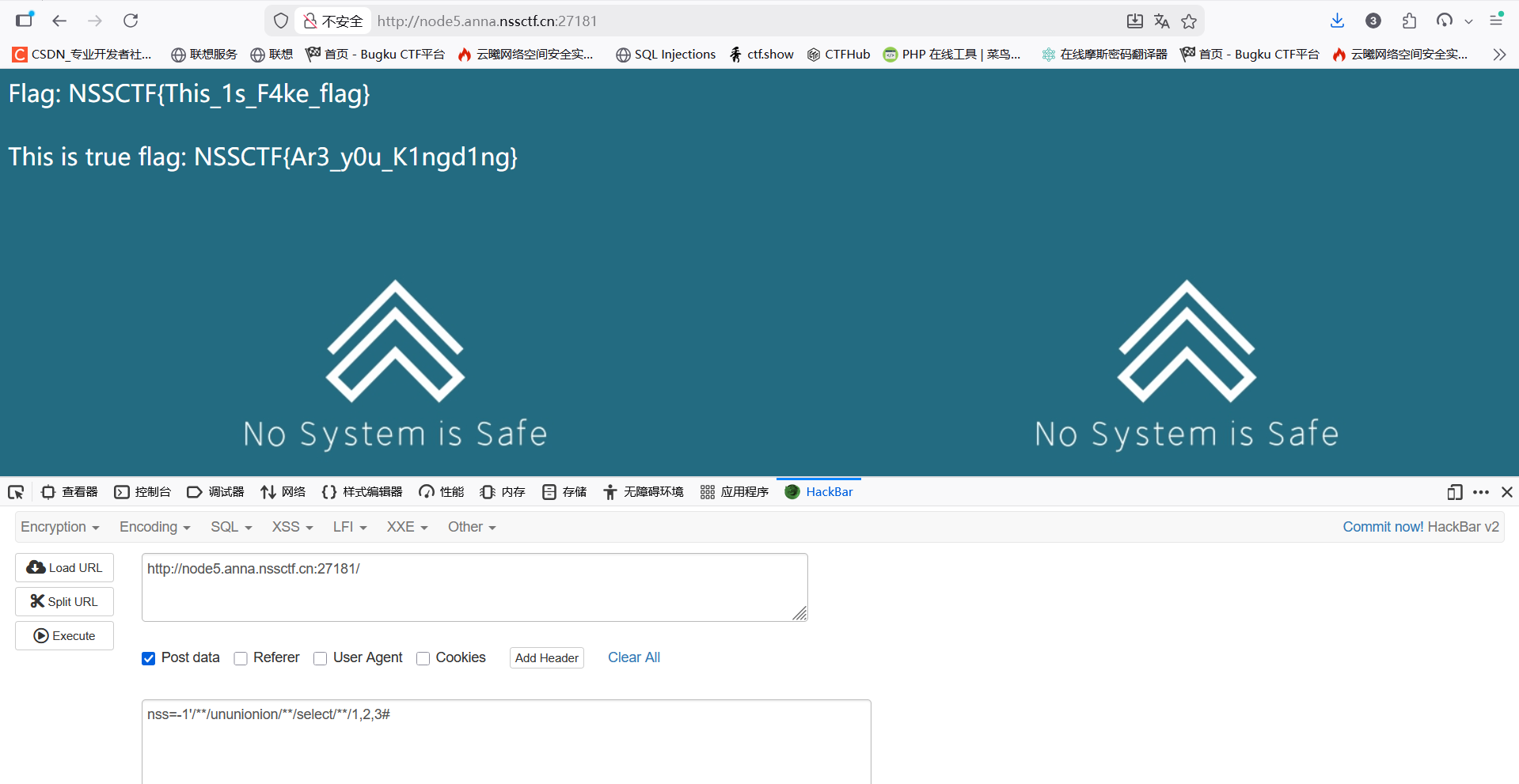 采用联合注入,判断显示位,nss=-1'/**/ununionion/**/select/**/1,2,3#,发现没有回显