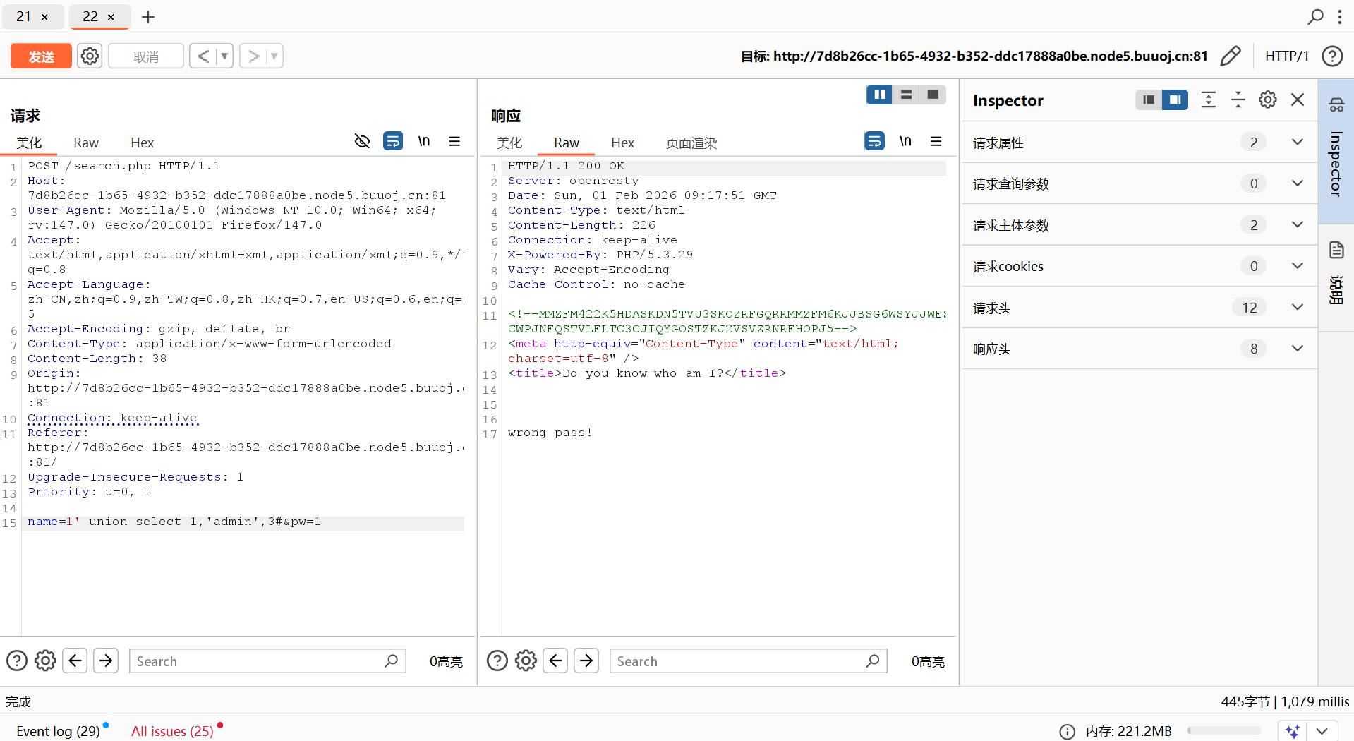 url = "http://41a8c6b3-f4d5-4b79-9bbc-0bf925168a5f.node4.buuoj.cn/search.php?id="