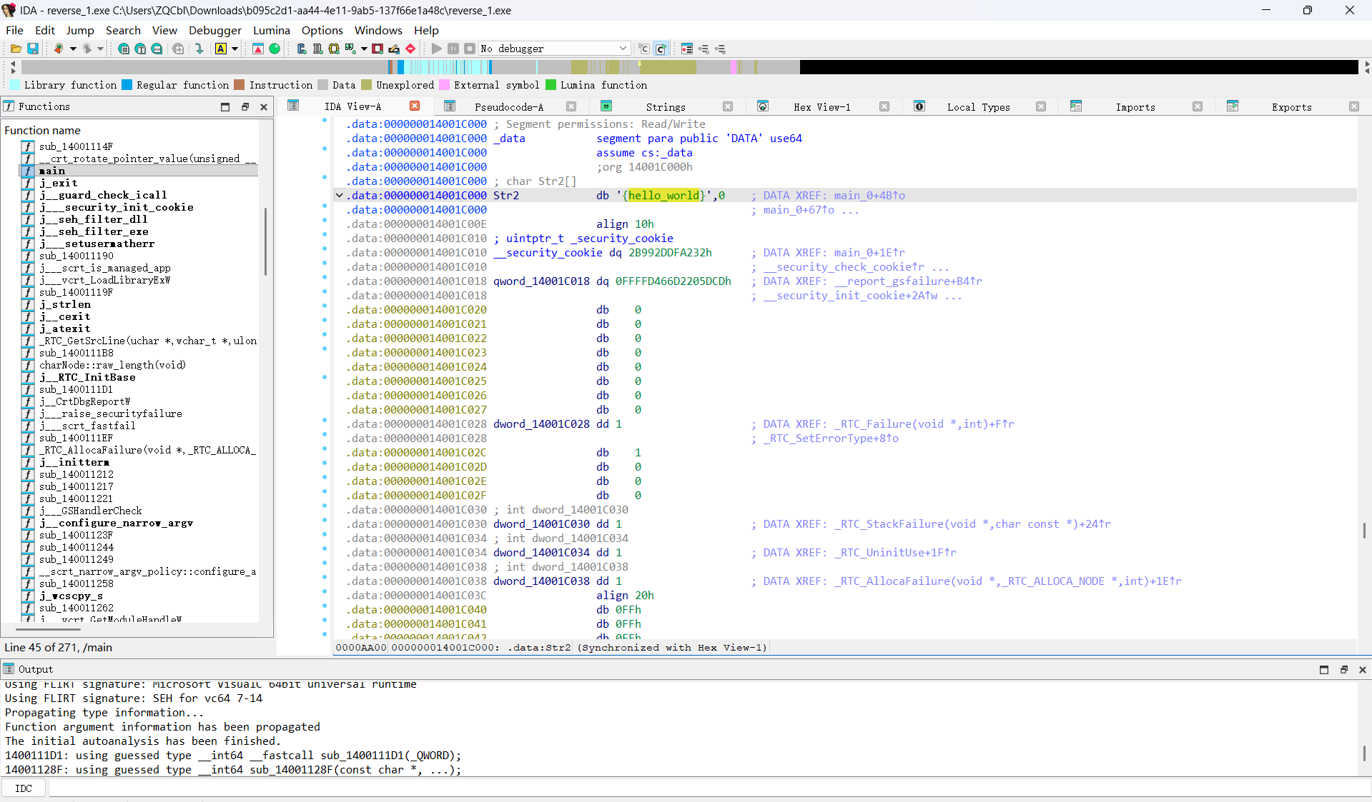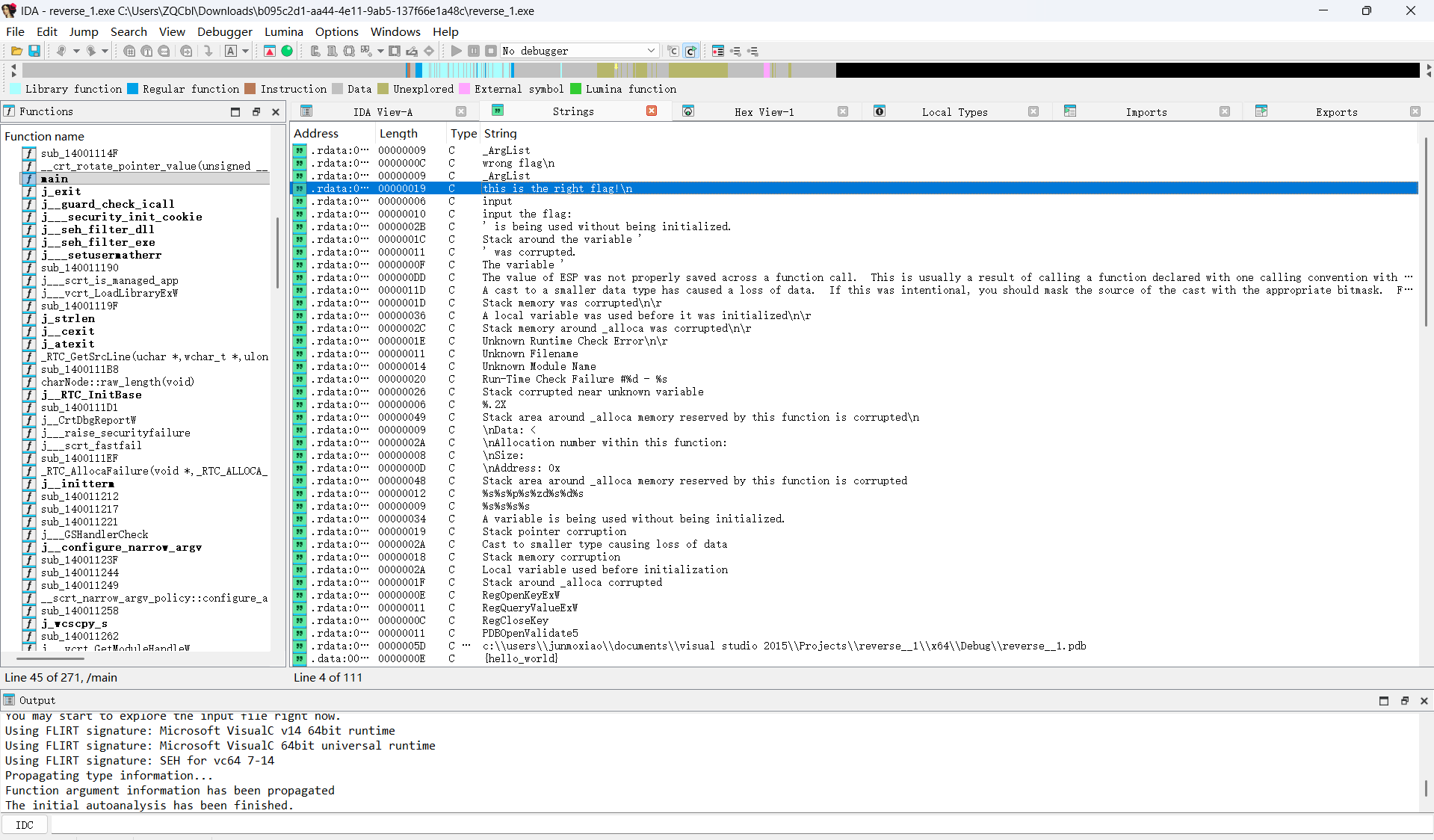 这题以前已经做过了,先用IDA打开,发现没有什么主要的信息,使用strings查看一下