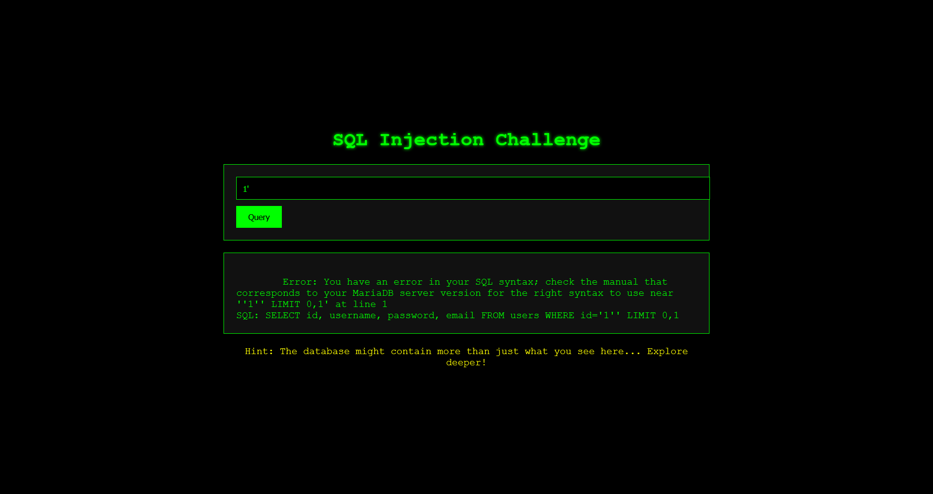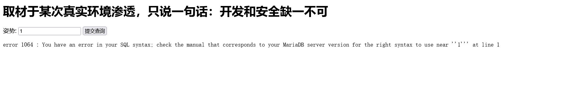 先查看一下是什么注入,输入1'出现报错,说明是字符型注入,单引号闭合