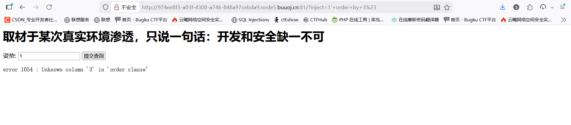 然后查询列数,输入1' order by 3#时出现报错说明列数为3列