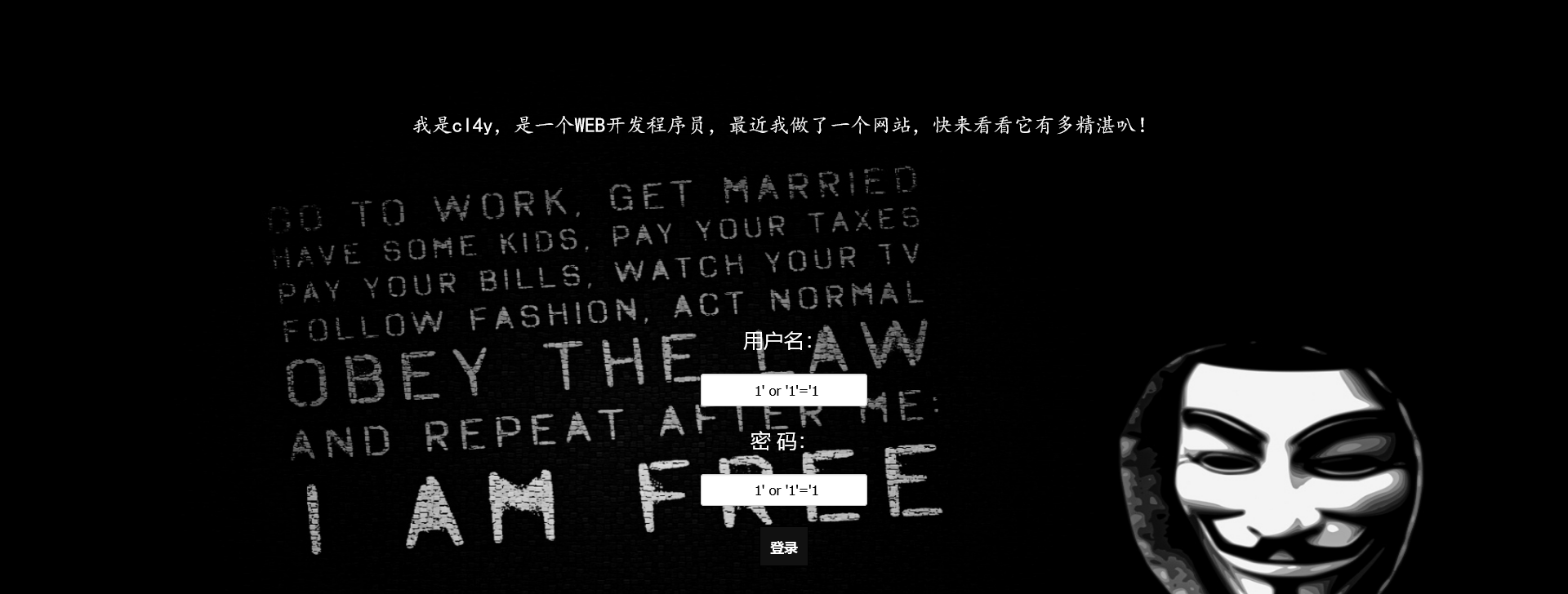 这题很简单,我尝试了一下万能密码,flag就出来了