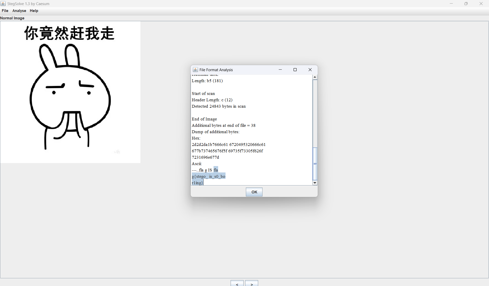 这题也是以前做过的,使用stegsolve打开图片,打开File Format(文件格式),就可以得到flag