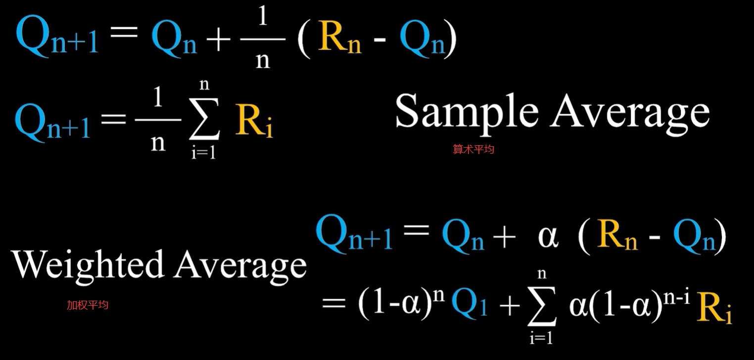 在前面的老虎机强化学习中,所用到的是带有初始值的算术平均。