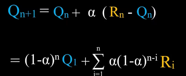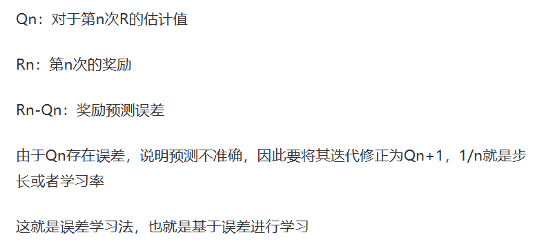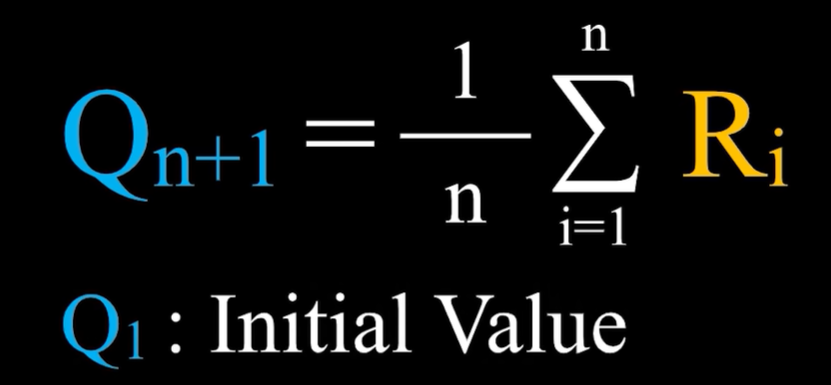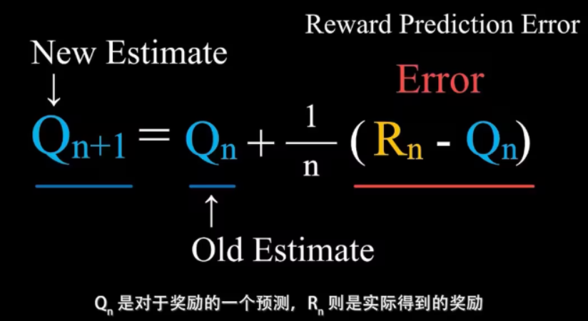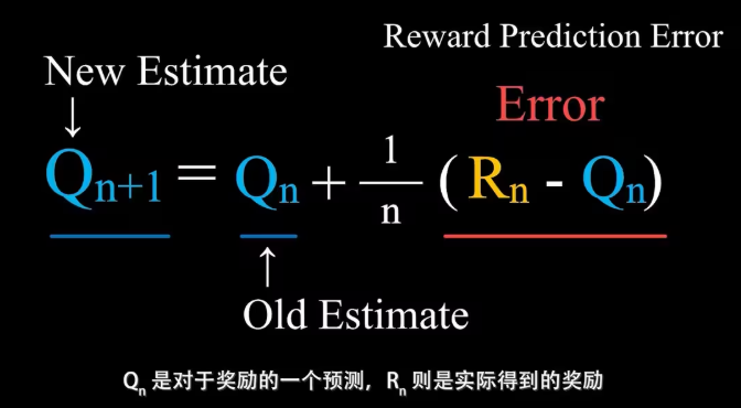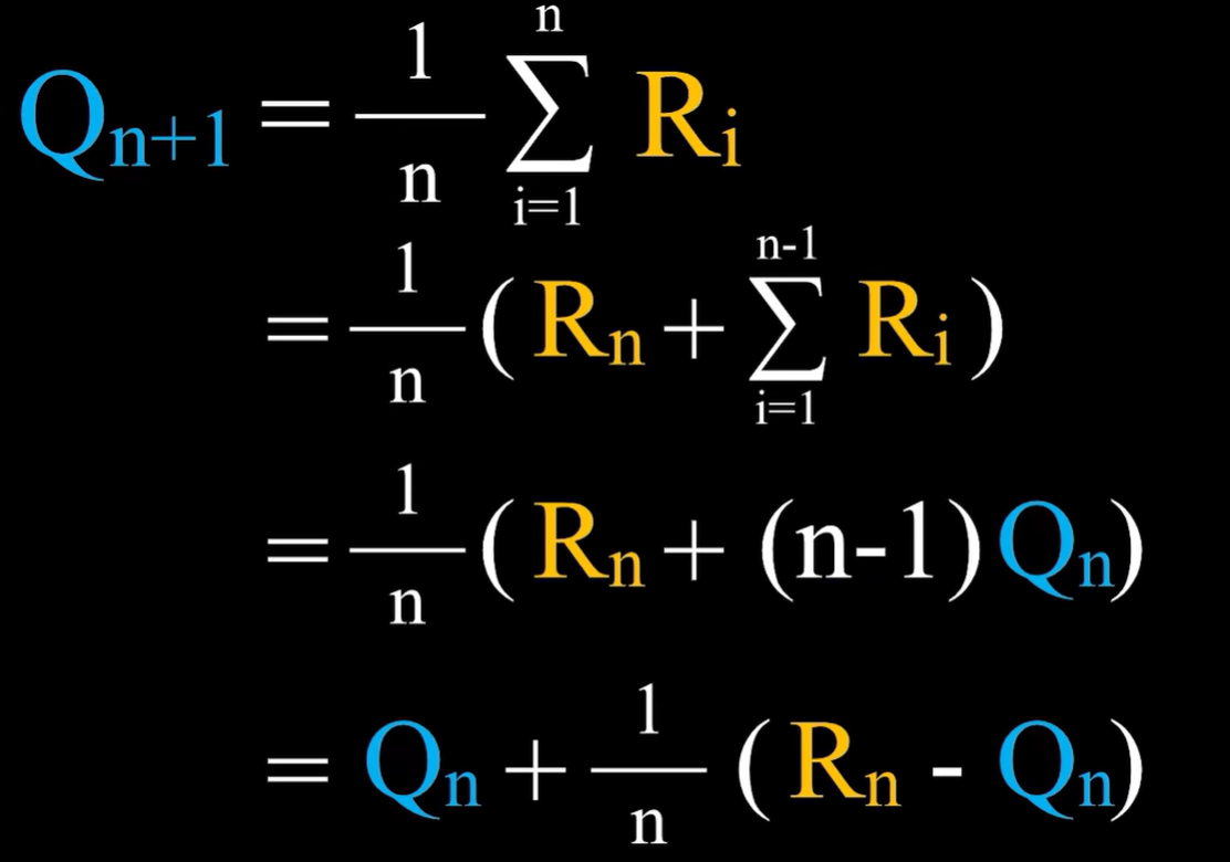Qn+1指的是在采取这个行动n次之后,得到了n次对应的奖励之后对这个行动价值的估计值,即这n次奖励的平均。