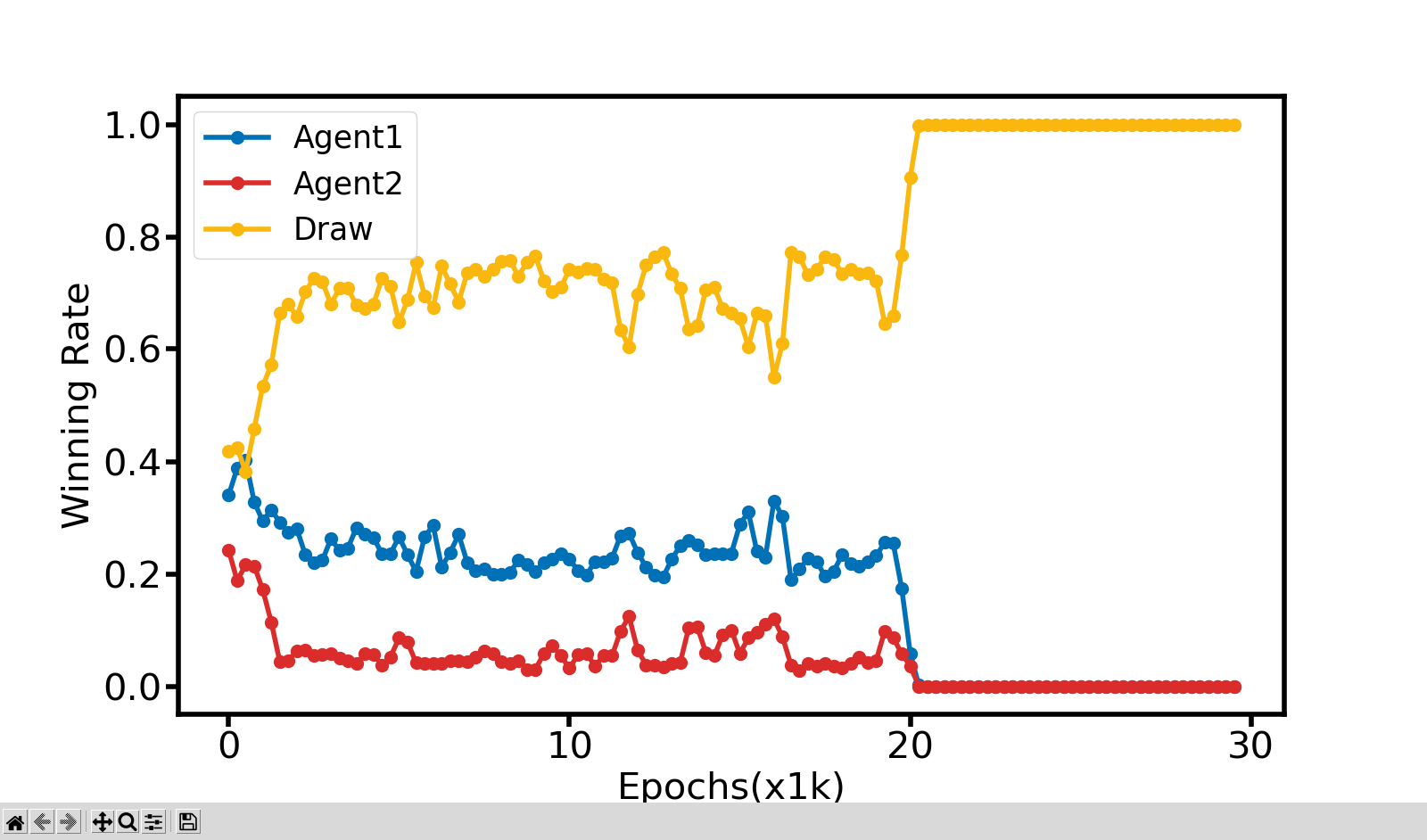 winner = Judge(Outcome, 1) # 判断 Agent1 是否获胜