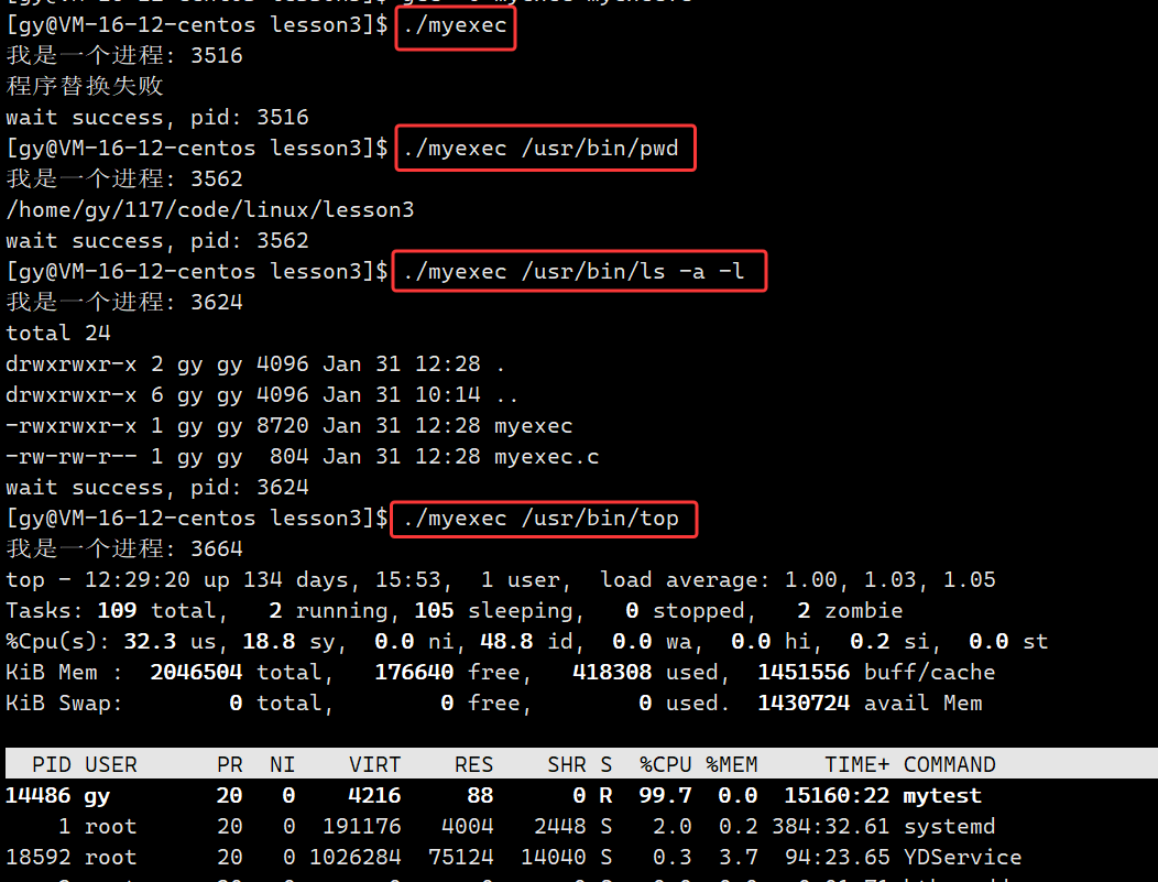 1. 单个进程程序替换
