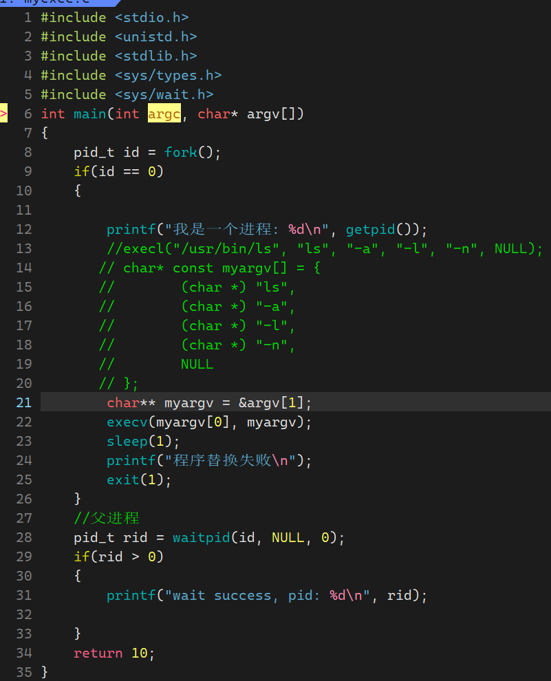 修改myexec.c文件