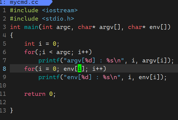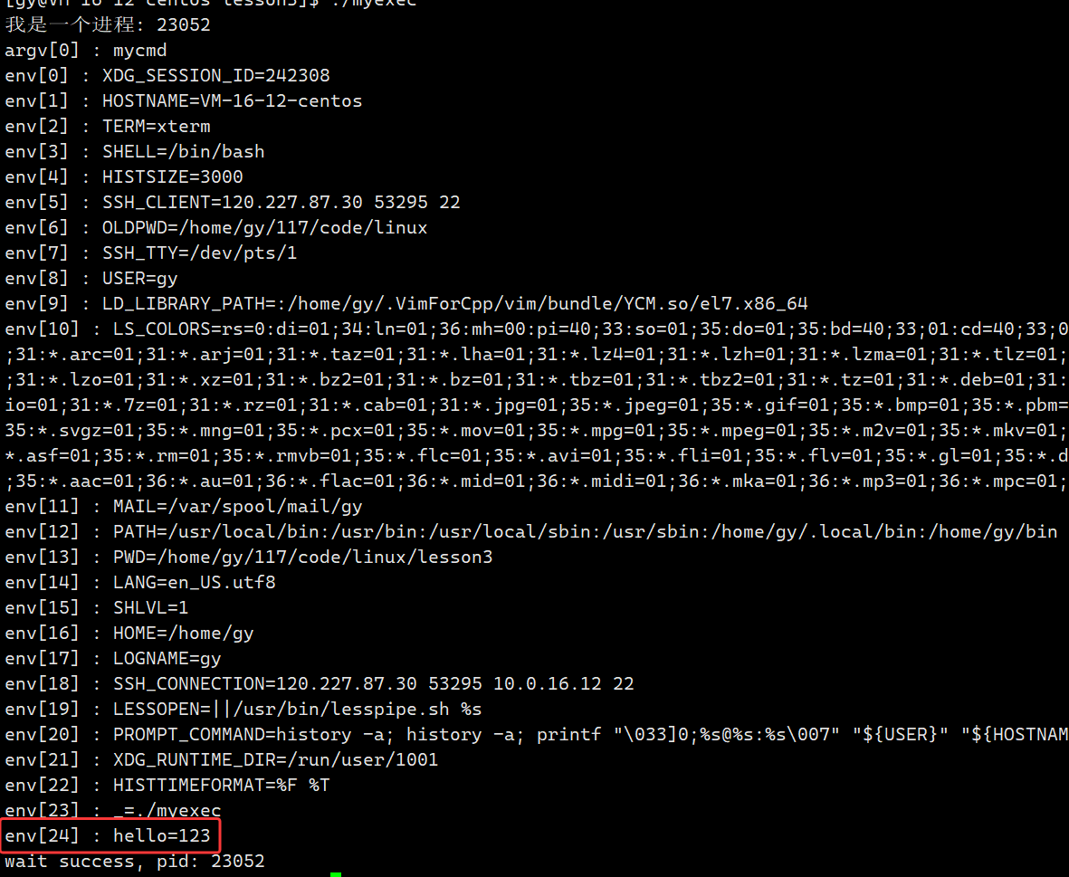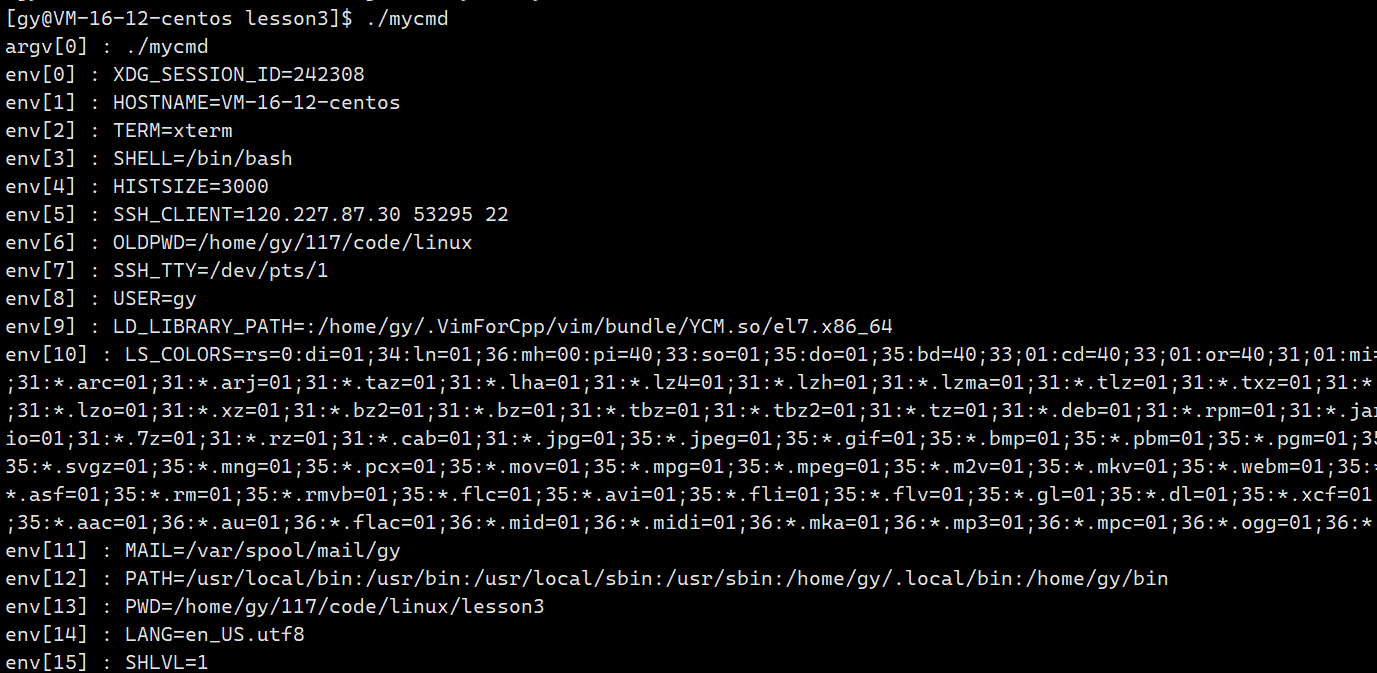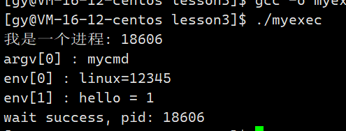 修改mycmd.cc,打印argv数组内容和env数组内容(命令行参数和环境变量)