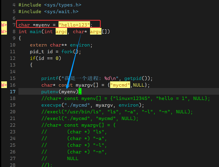- 我们的进程继承了父进程的环境变量表,首先我们创建一个全局变量,代表当前shell的新的环境变量表(环境变量表必须全局有效)