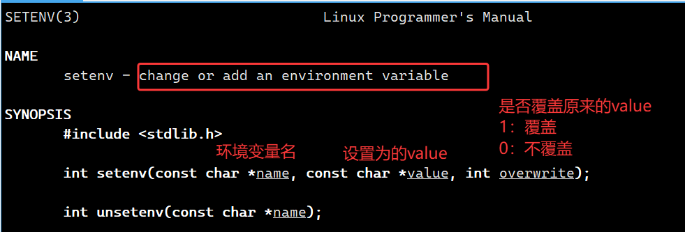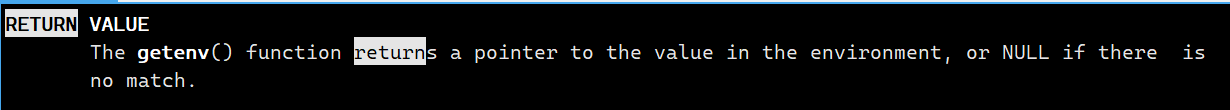 - 获取环境变量,使用getenv函数,获取成功返回指向该环境变量字符串的指针;失败返回NULL