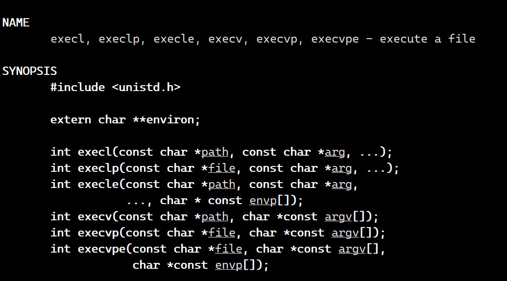 - execve是系统调用函数,上面的exec*函数(库函数)底层都是调用的execve函数