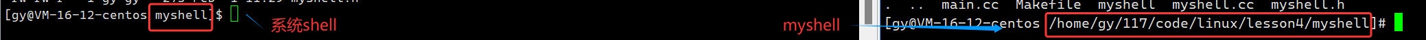 - 系统的shell命令行路径只显示当前目录shell,我们自己实现的shell显示出全部路径