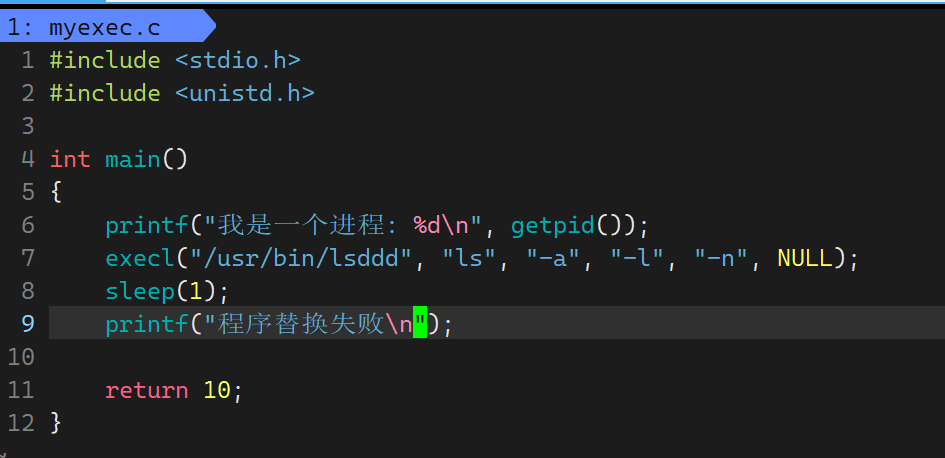 - 因为程序替换我们不需要判断是否替换失败,直接在exec系列函数后面打印程序替换失败即可,因为程序替换成功之后后续代码根本不会执行,只要往后执行了后续代码,则程序替换失败