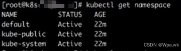 # 列出集群中所有的命名空间,ns是namespace缩写