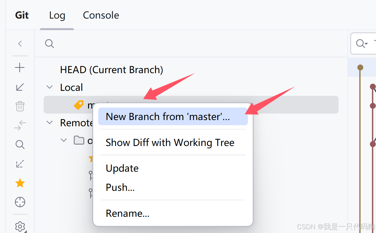1.选择你的分支鼠标右键,以这个分支为副本,创建一个新的分支,选择New Branch from 分支名字