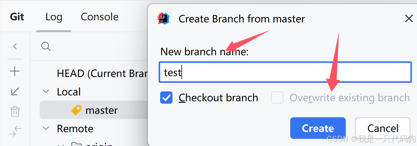 2.输入你要创建的分支名字,然后点击Create