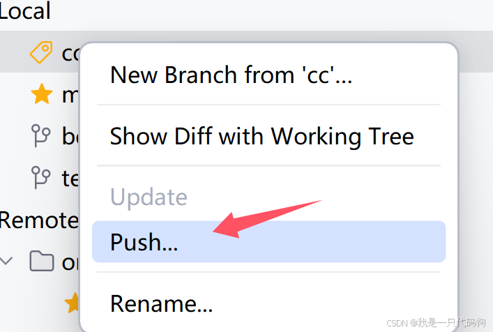 3.在Local这里,鼠标右键,选择你的分支,然后选择push