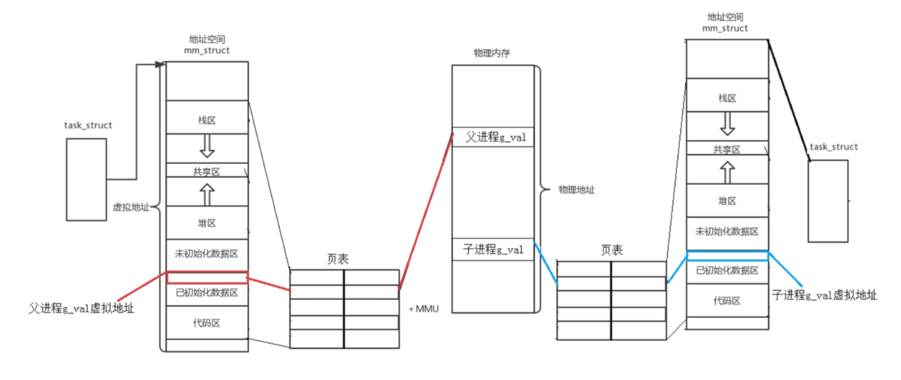 我们能够发现每次执行 子进程与父进程的g_val不同,但输出的地址却是一样