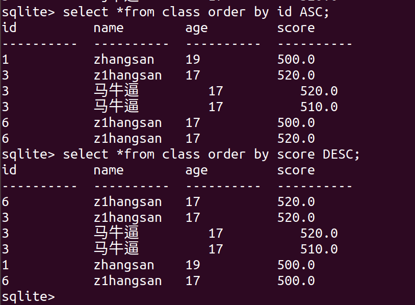 升序||降序:select * from 表名 order by 列名 ASC||DESC