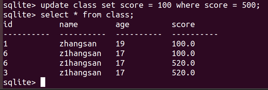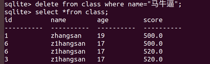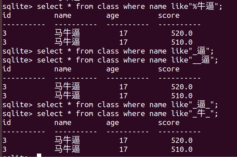 3,查询满足条件的数据:select * from 表名 where 列名 条件...;