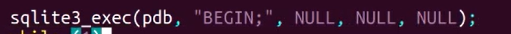 所谓 "事务" 就是指一组 SQL 命令,这些命令要么一起执行,要么都不被执行。在 SQLite中,每调用一次 sqlite3_exec () 函数,就会隐式地开启了一个事务,如果插入一条数据,就调用该函数一次,事务就会被反复地开启、关闭,会增大 IO 量。如果在插入数据前显式开启事务,插入后再一起提交,则会大大提高 IO 效率,进而加快数据插入速度。