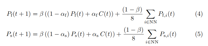 对于大障碍物公式可利用邻域栅格进行检测,belta用于调节中心栅格及相邻栅格权重: