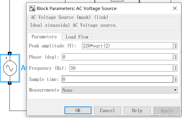 ①电源AC Voltage Source:220V 50Hz