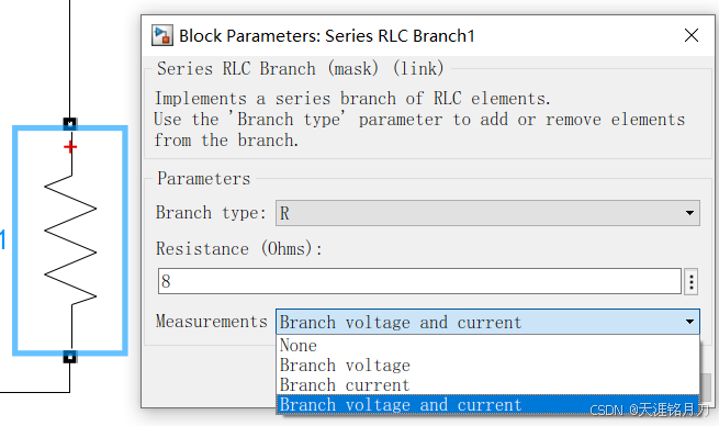 ②RLC支路只选择电阻,阻值可根据仿真需求自行计算,例子的阻值为8Ω。