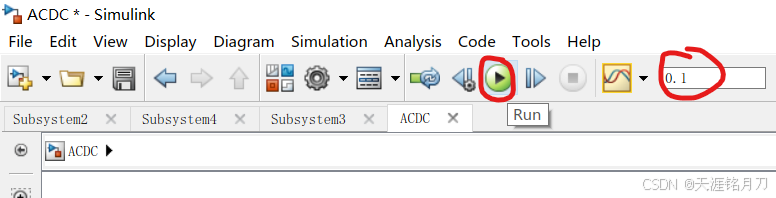 仿真时间设置为0.1,点击运行即可
