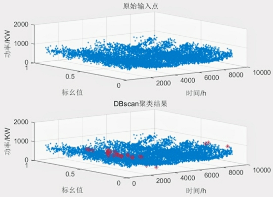 在风电和负荷场景分析中,传统的K-means聚类方法虽然简单易用,但在处理噪声和异常值时表现不佳。为了解决这个问题,我们可以采用DBSCAN(Density-Based Spatial Clustering of Applications with Noise)密度聚类方法。DBSCAN能够识别出数据中的噪声点,并且不需要预先指定簇的数量,这使得它在风电-负荷场景削减中表现出色。