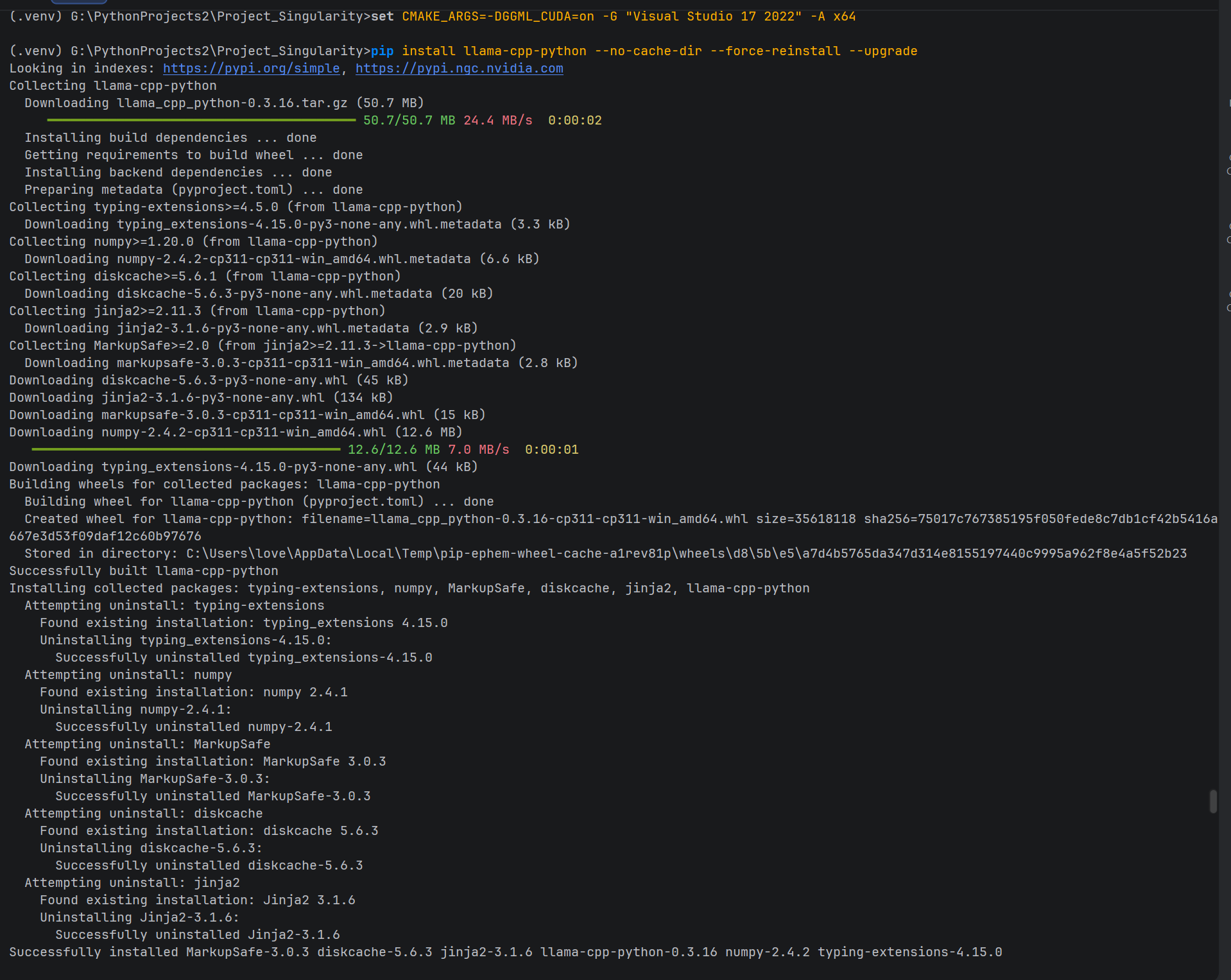 set CMAKE_ARGS=-DGGML_CUDA=on -G "Visual Studio 17 2022" -A x64