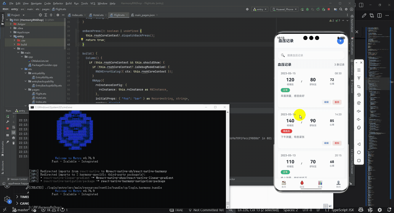 在移动应用开发中,健康监测类应用是一种重要的应用类型,需要考虑数据记录、状态判断、用户交互等多个方面。本文将深入分析一个功能完备的 React Native 血压监测应用实现,探讨其架构设计、状态管理、数据处理以及跨端兼容性策略。