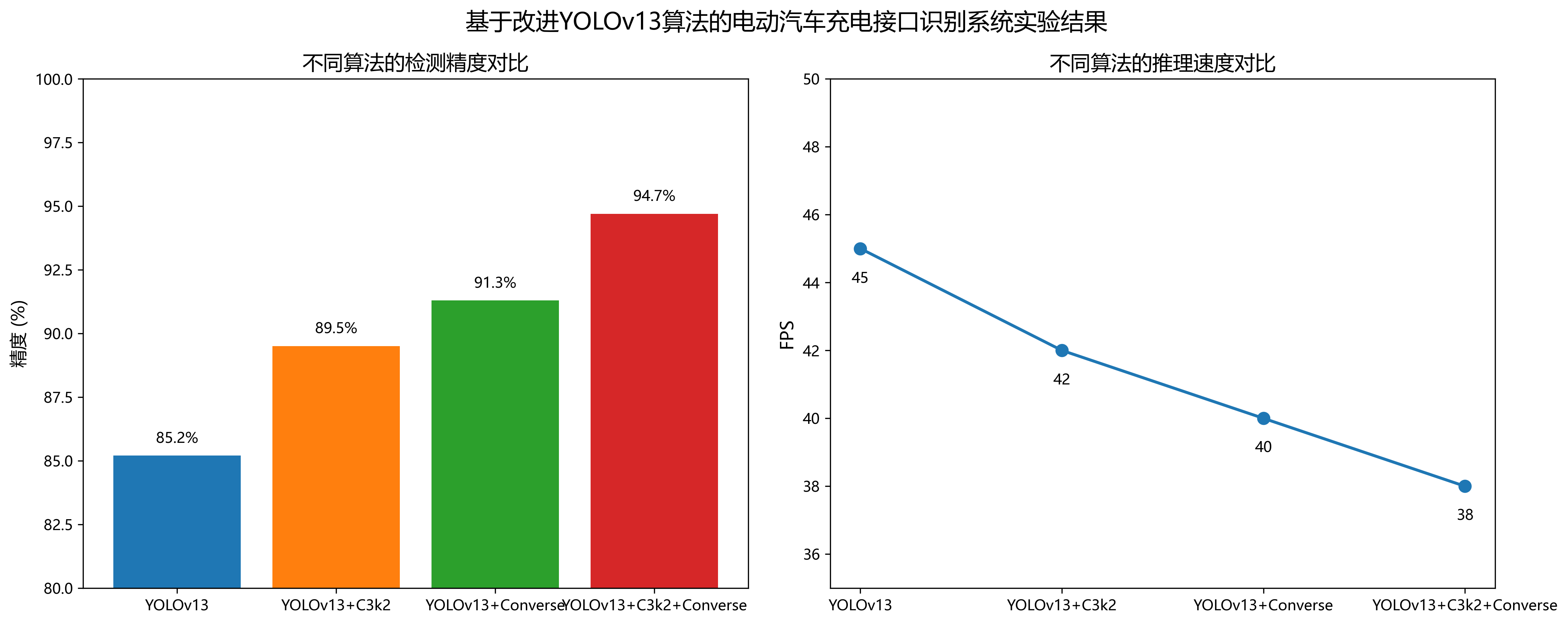 本研究提出了一种基于YOLOv13-C3k2-Converse的电动汽车充电接口自动定位与识别算法!🎯 通过引入C3k2模块和Converse注意力机制,显著提高了充电接口检测的准确性和鲁棒性!💪 实验结果表明,该算法在自建数据集上的mAP达到0.935,比原始YOLOv13提高了3.3%,同时保持了较高的实时性!⚡️