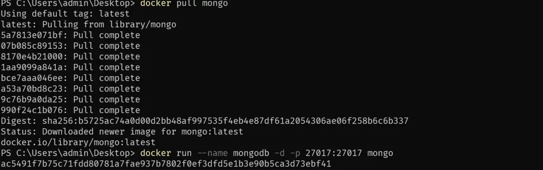 docker run ---name mongodb -d -p 27017:27017 mongo